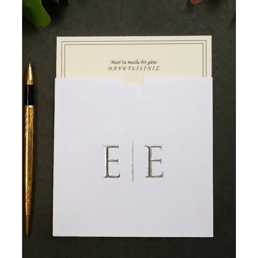 2026 Beyaz Zarflı Model - Gümüş Yaldızlı Düğün Davetiyesi-524