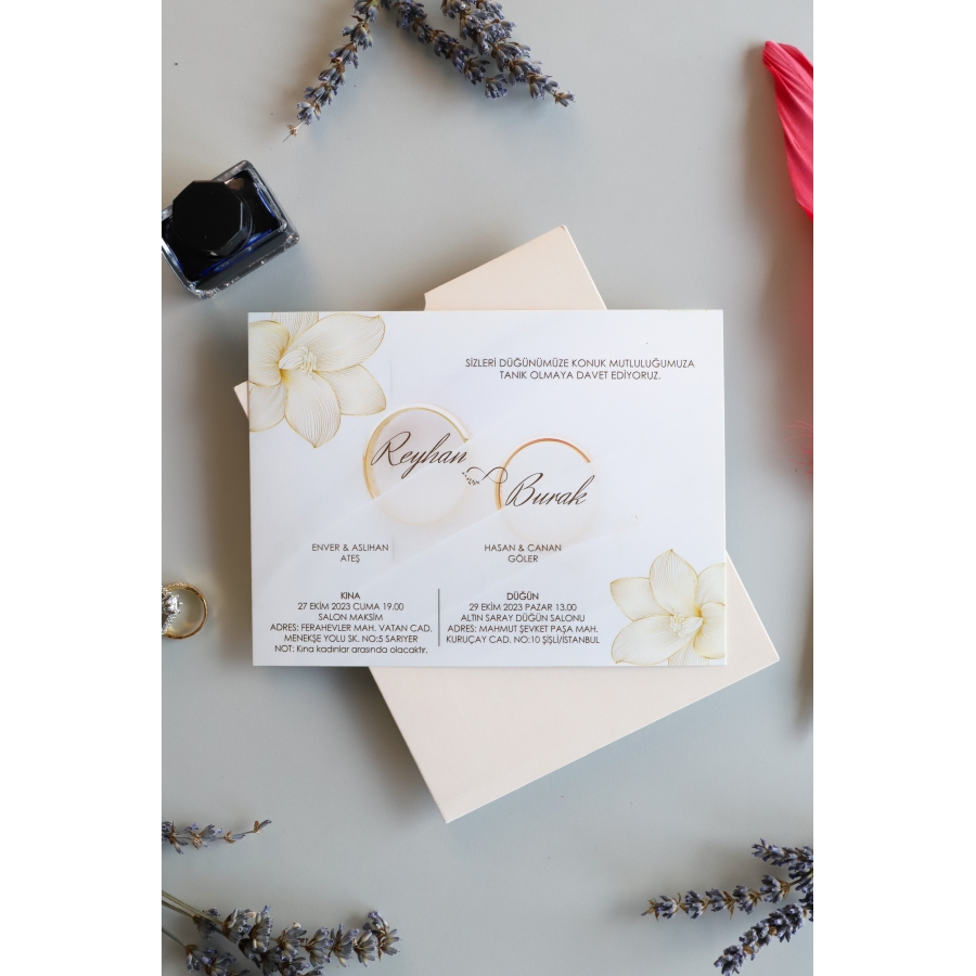 Davetiye Özellikleri: 250 gram Kalın Beyaz Kuşe Kartona Renkli Baskı Yapılmaktadır.