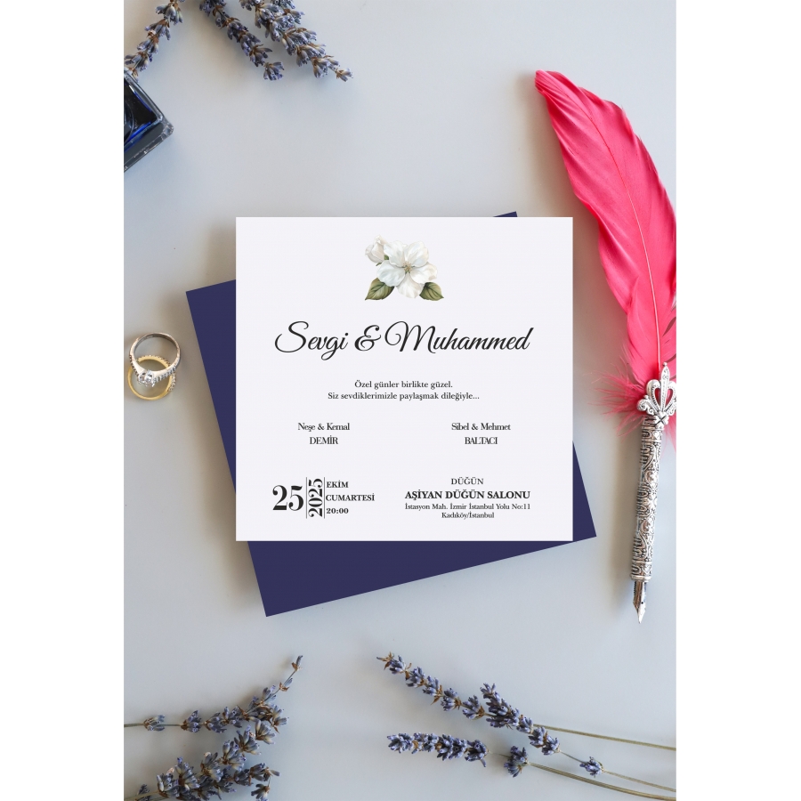 Davetiye Özellikleri: 250 gram Kalın Beyaz Kuşe Kartona Renkli Baskı Yapılmaktadır.