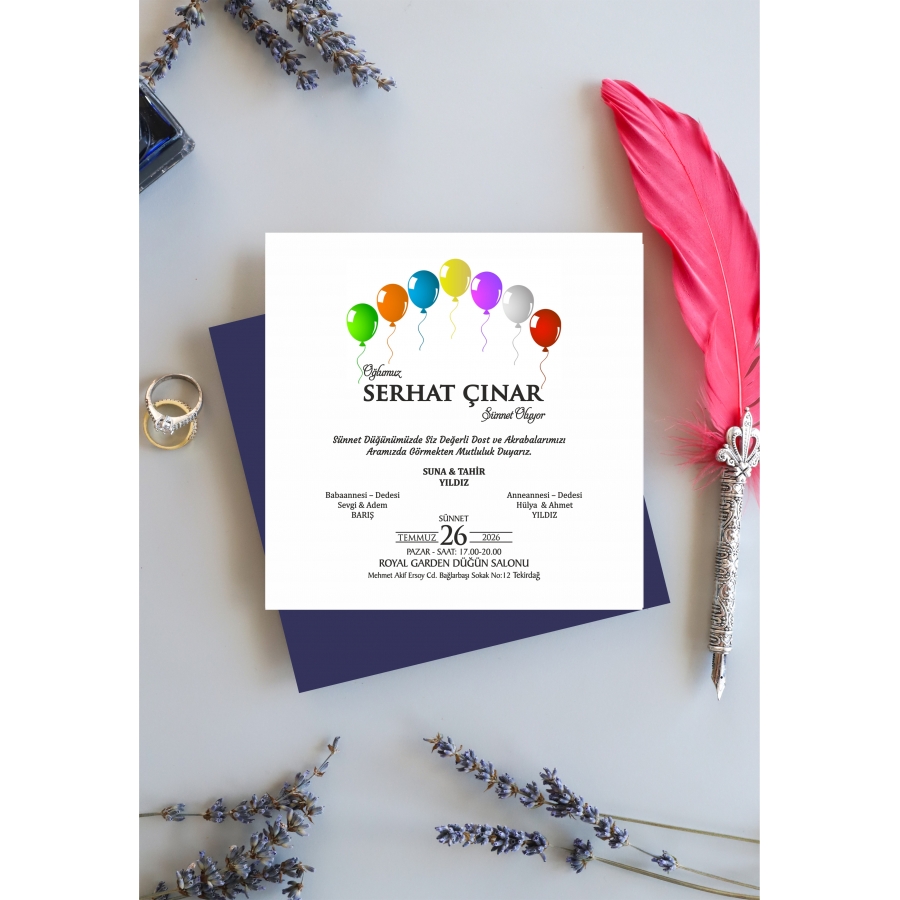 Sünnet Davetiyesi Özellikleri: 250 gram Kalın Beyaz Kuşe Kartona Renkli Baskı Yapılmaktadır.
