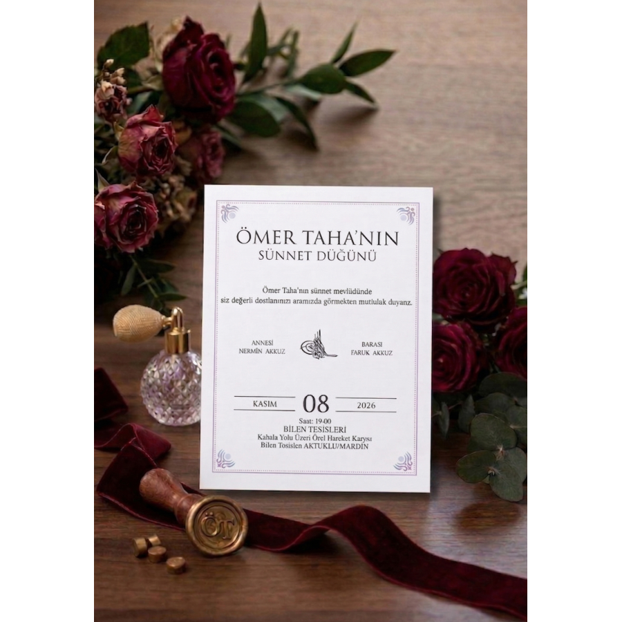 Sünnet Davetiyesi Özellikleri: 250 gram Kalın Beyaz Kuşe Kartona Renkli Baskı Yapılmaktadır.