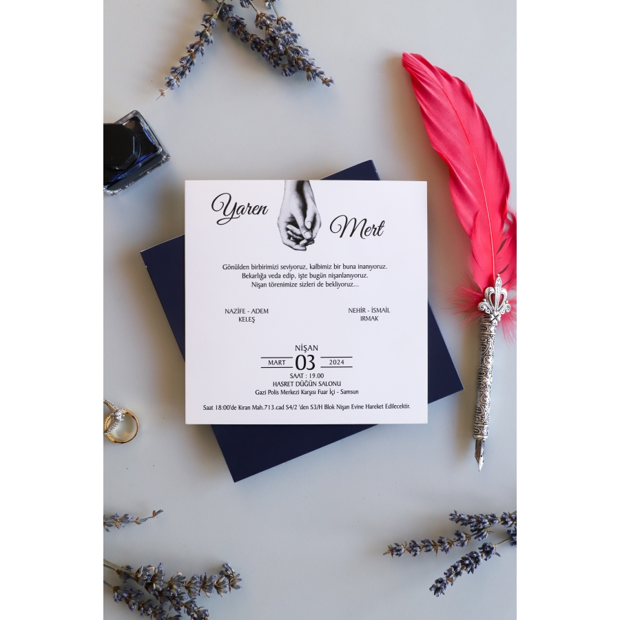 Davetiye Özellikleri: 250 gram Kalın Beyaz Kuşe Kartona Renkli Baskı Yapılmaktadır.